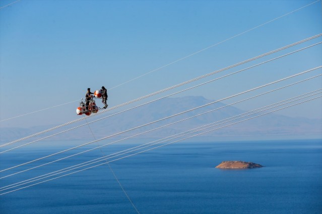 Van ile Siirt arasında elektrik aktarımını sağlayacak yüksek gerilim hattında çalışan işçiler, yerden metrelerce yükseklikte tel ve direklerin üzerinde bir çok riski göze alarak ekmek mücadelesi veriyor.
