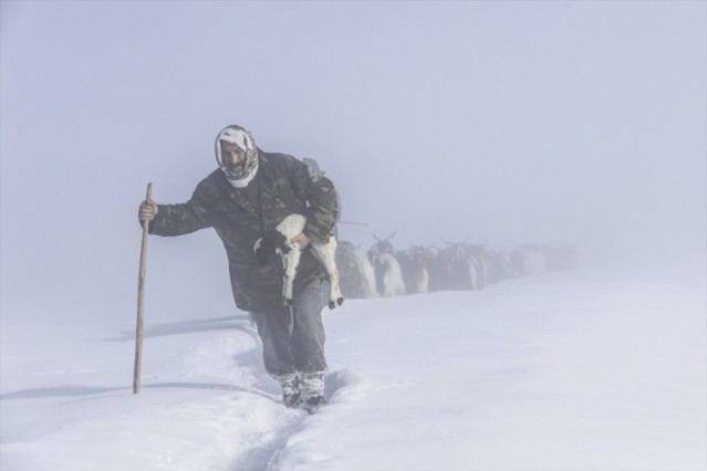 Muş merkeze bağlı Yukarı Yongalı köyünde yaşayan vatandaşlar, kışın köyden 7 kilometre uzaklıktaki yaylalardan koyunlarını köylerine getiriyor. 6 saatlik zorlu yolculuk sonrası köylerine ulaşan vatandaşlar doğum yapan koyunların kuzularını kucaklarında taşıyor.