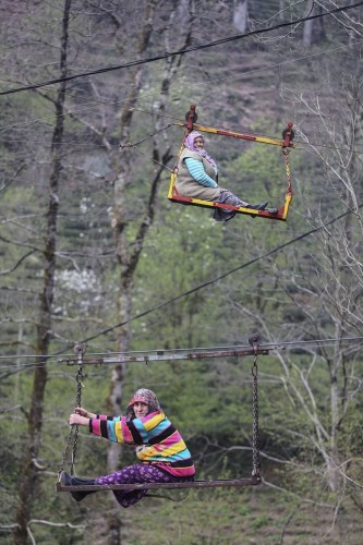 Rize'de yaşayan iki kadın, 120 metre uzunluğunda ilkel teleferikle her gün evlerine gidiyor.