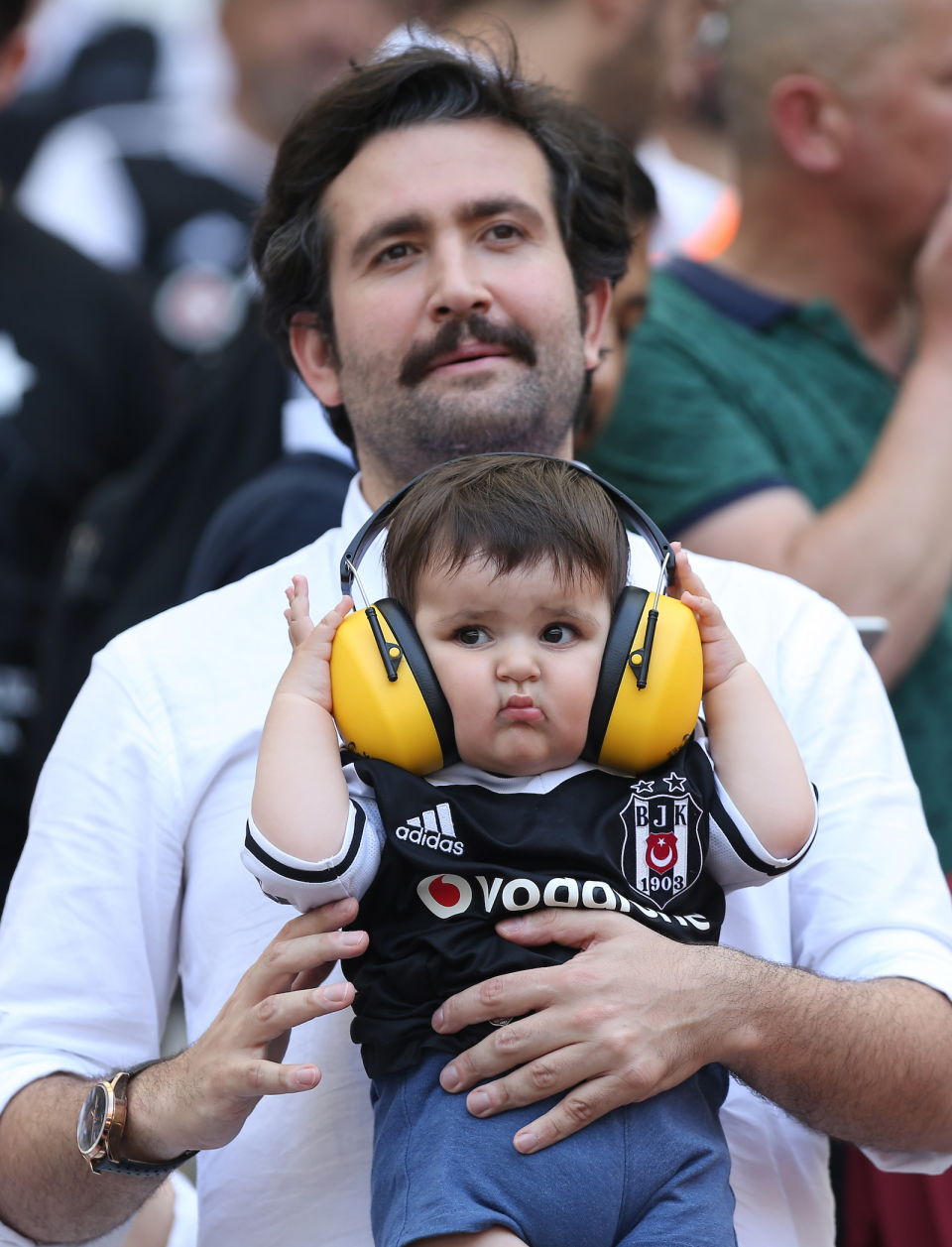 Spor Toto Süper Lig'in son haftasında Beşiktaş ile Osmanlıspor, Vodafone Park'ta karşılaştı. Beşiktaşlı bir taraftar, bebeğiyle maçı izledi.