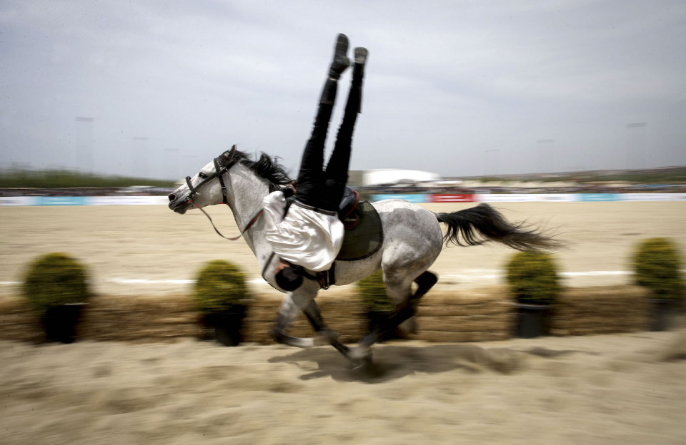 Dünya Etnospor Konfederasyonu tarafından organize edilen ve Anadolu Ajansının (AA) global iletişim ortağı olduğu 2. Etnospor Kültür Festivali'nde atlı akrobasi gösterileri beğeni topladı.