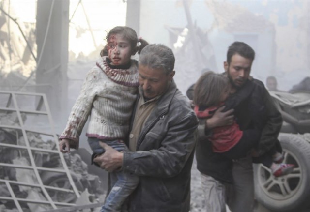 Suriye'de Esed rejimi, başkent Şam'da ''çatışmasızlık bölgeleri'' içerisinde yer alan Doğu Guta bölgesindeki Ayn Terma beldesine saldırı düzenledi. Yaralıların bulunduğu saldırıda vatandaşlar, çocukları bölgeden uzaklaştırdı.
