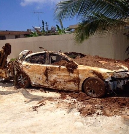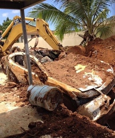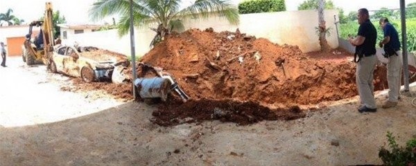 Polis yaşlı adamın bahçesinde arama yapınca arabasını toprağa gömdüğü ortaya çıktı.