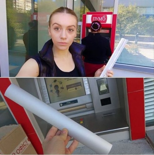 Ukrayna'da, hırsızlar şeytanın bile aklına gelmeyecek bir yöntemle banka ATM'lerinden para çalıyorlar.