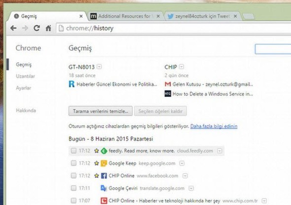 chrome://history yazdığınızda web tarayıcısı geçmişinizi bir bakışta görebileceksiniz.