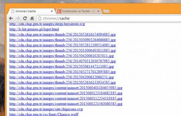chrome://cache komutuyla web tarayıcınızın ön-belleğindeki tüm öğeleri görebilirsiniz.