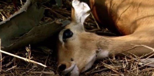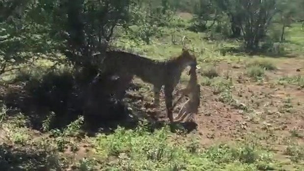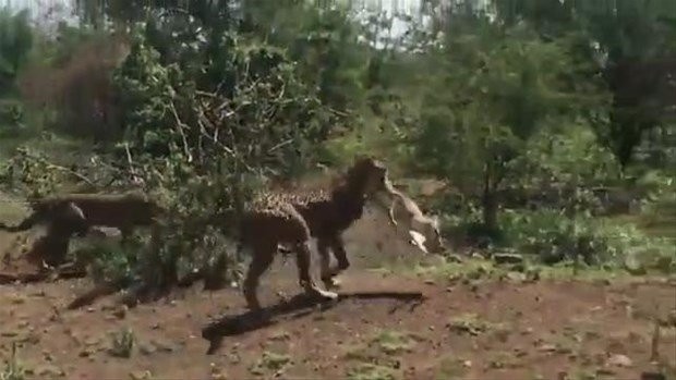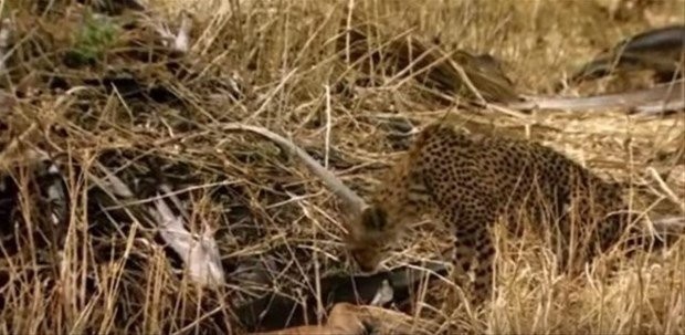 Çita öldürmek üzere olduğu impalayı bırakıp koşarak uzaklaşıyor.