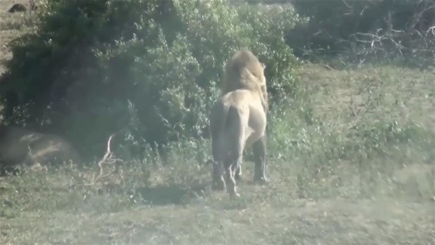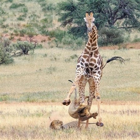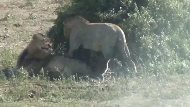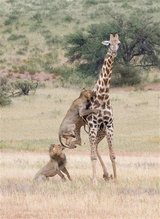 Görüntüler iki aslanın bir zürafayı avlama çabalarını ve zürafanın hayatta kalma mücadelesini anlatıyor.