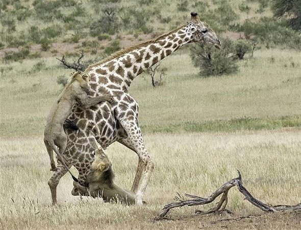 Dakikalarca süren bu kovalamaca aslanların zürafayı yere yıkmasıyla son buluyor.