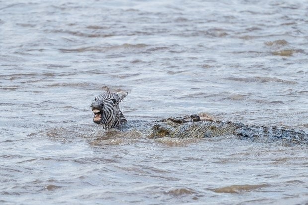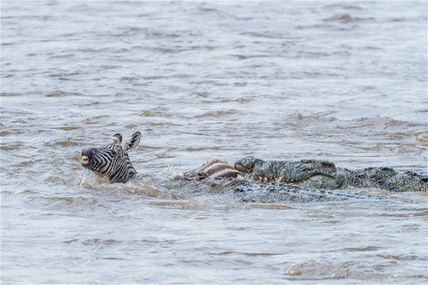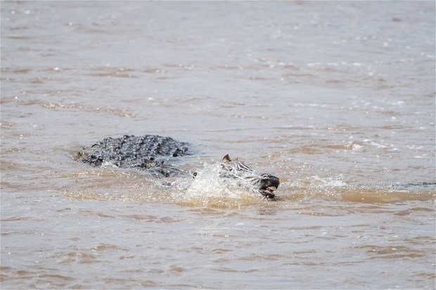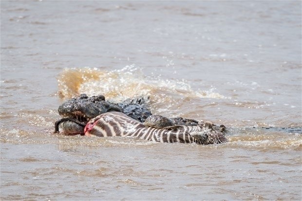 Genç bir zebranın Masai Mara'da aç bir timsah tarafından avlanması kameralara takıldı.