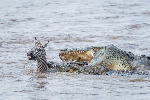 Suyun içinde sessizce zebraya yaklaşan timsah bir anda avına saldırdı ve böyle parçaladı.