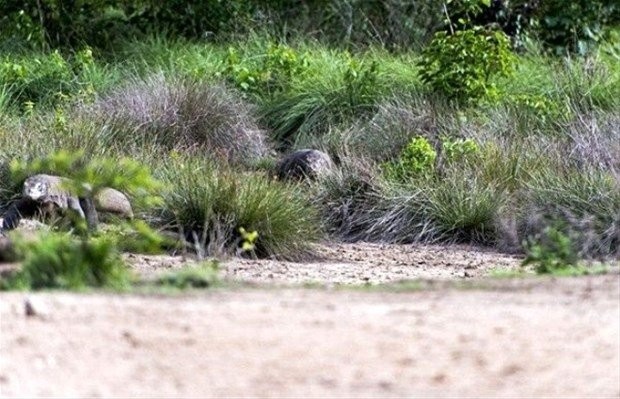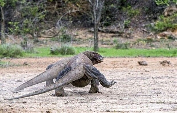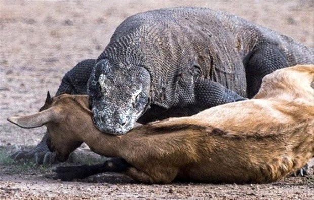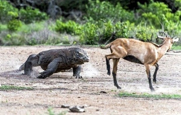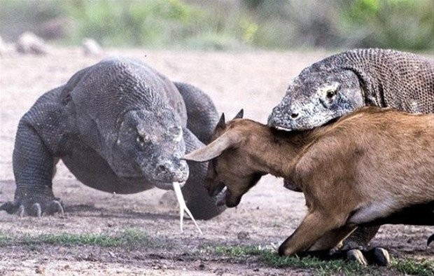 İşte iki komodo ejderi ile karşı karşıya gelen keçinin zor anları...