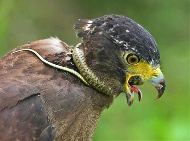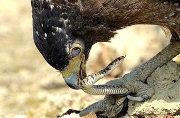Vahşi doğada hayvanların arasındaki av ile avcı ilişkisi sıkça rastlanan bir durumdur ama bu kez durumlar değişti. Avcı olan bir anda ava dönüştü. Kartal yılanı avlamak isterken az kalsın canından oluyordu.