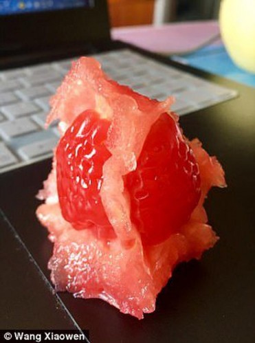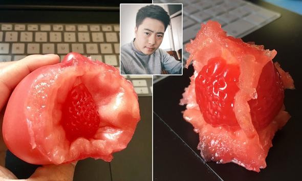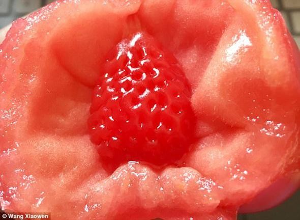 Mail Online'da yer alan habere göre Çinli öğrenci Wang Xiaowen, domatesi ısırdığında içindeki çileği fark etti.
