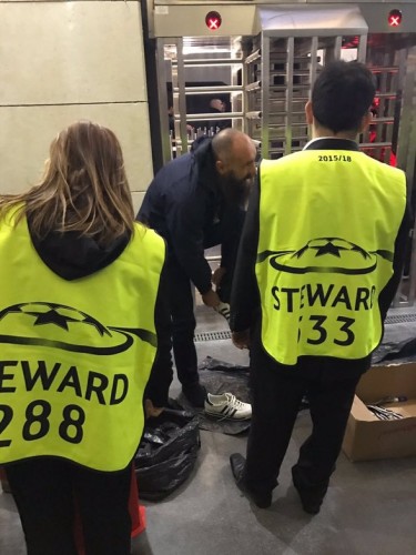 Napoli taraftarı ayakkabılarına kadar aranması dikkatlerden kaçmadı.