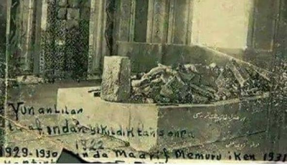 Yunan ordusunun geri çekilirken tahrip ettiği Ertuğrul Gazi Türbesi. Söğüt,Bilecik.1922