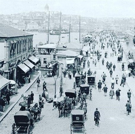 1900'lü yıllarda Galata Köprüsü günlük hayat.