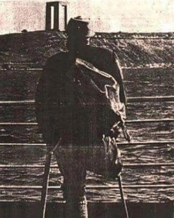 Şehitler Abidesi açılışında bir bacağını Çanakkale'de bırakmış Gazimiz, 21 Ağustos 1960.
