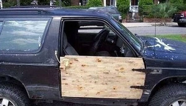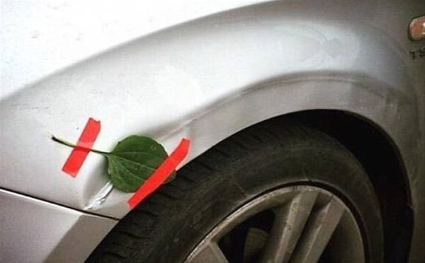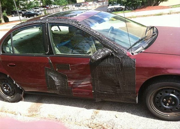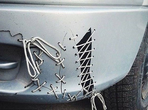 İşte otomobillerinde oluşan hasarları kimsenin aklına gelmeyecek bir yaratıcılıkla onarmaya çalışan insanlar.