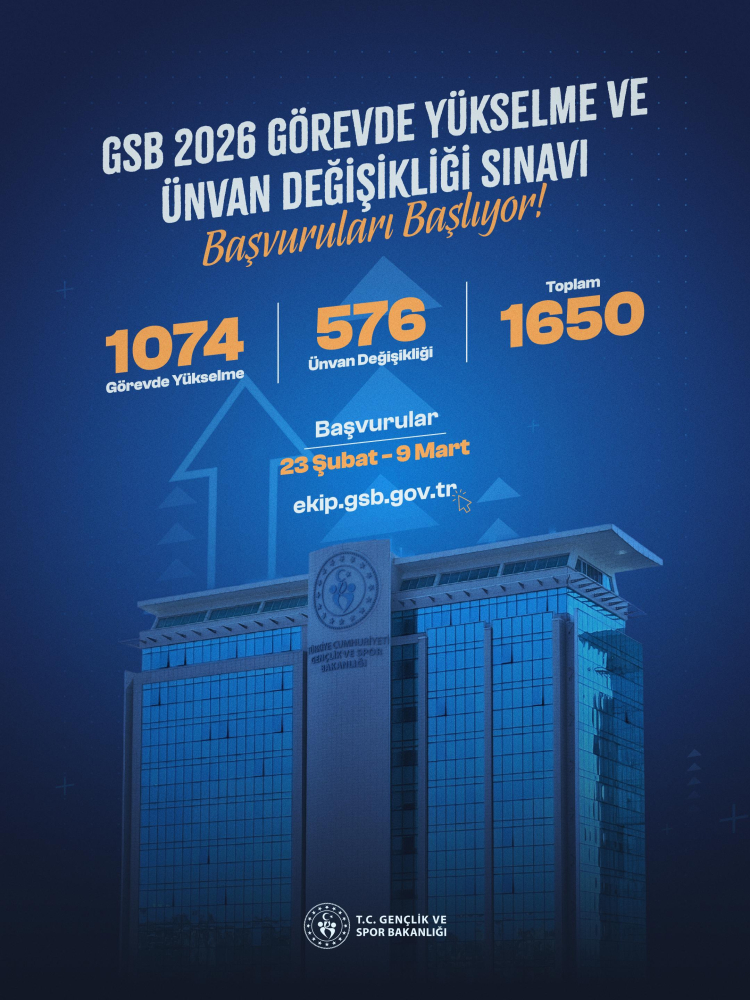 Gençlik ve Spor Bakanı Dr. Osman Aşkın Bak, bakanlığın merkez ve taşra teşkilatında görev yapan personel için 'Görevde Yükselme ve Ünvan Değişikliği Sınavı' başvurularının başladığını duyurdu.