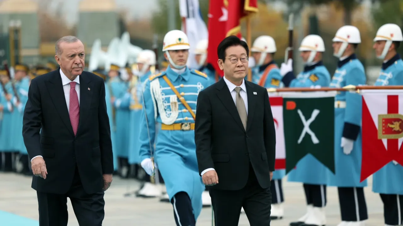 Cumhurbaşkanı Erdoğan, Güney Kore Cumhurbaşkanı Lee Jae-myung'u Külliye'de resmi törenle karşıladı. İki ülkenin milli marşları çalındı, liderler heyetlerini tanıttı ve baş başa görüşmelere geçti.