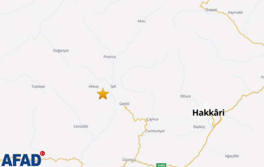 Afet ve Acil Durum Yönetimi Başkanlığı (AFAD) verilerine göre, Hakkari merkezde 3.1 büyüklüğünde bir deprem kaydedildi.