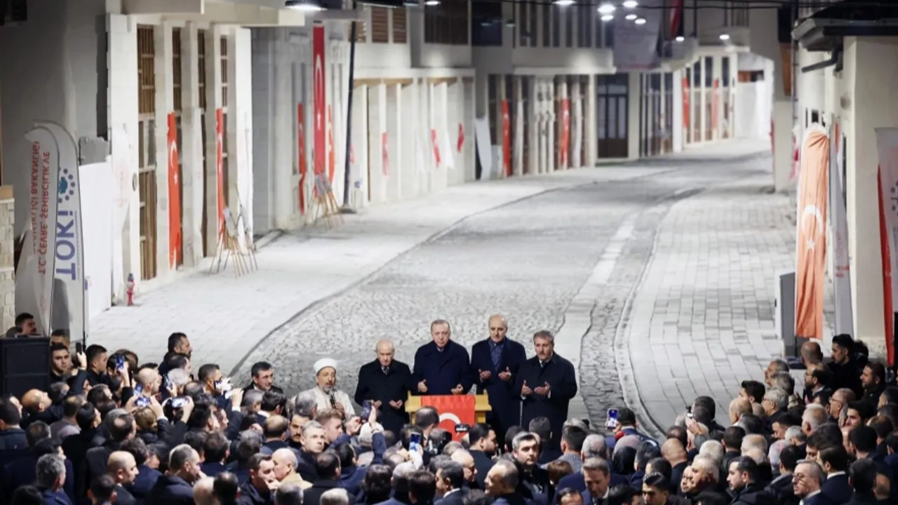 Cumhurbaşkanı Recep Tayyip Erdoğan, 6 Şubat depremlerinde hasar gören ve restorasyonu tamamlanan Hatay'daki tarihî Kurtuluş Caddesi'nin yeniden ışıklandırılması törenine katıldı.