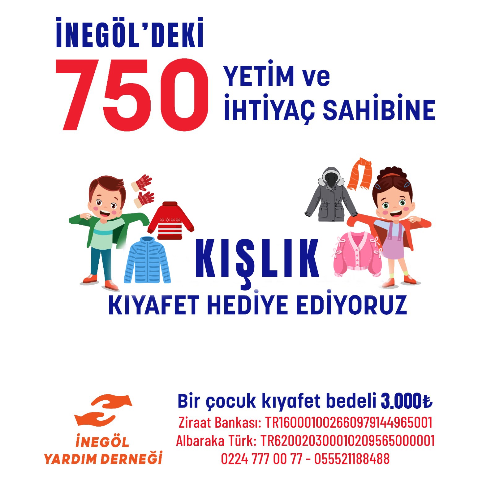 İnegöl yardım derneği kışın yaklaşmasıyla faaliyetlerine hız verdi. Dernek Başkanı Nida Menteş yaptığı açıklamada şunları söyledi. Malumunuz havaların soğumasıyla birlikte, İnegöl Yardım Derneği olarak anlamlı bir kış yardım kampanyası başlatıyoruz. "Kış Üşütür, İyilik Isıtır" sloganıyla yola çıkarak, İnegöl'de yaşayan 750 yetim ve ihtiyaç sahibi çocuğumuza kışlık kıyafet hediyesi ulaştırmayı hedefliyoruz.