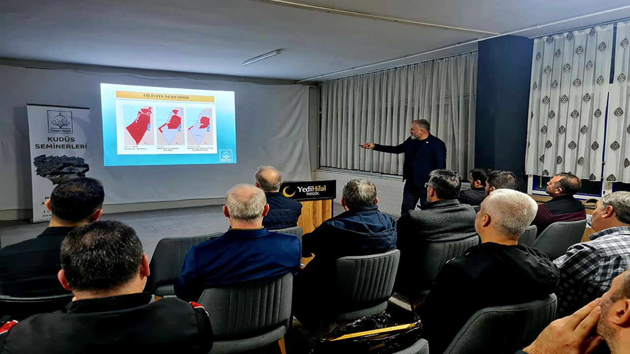 Filistin ve Kudüs davasının kalplere kazınması misyonuyla çalışmalar yapan Yedi Hilal Derneği Bursa İnegöl Şubesi, özel bir etkinliğe ev sahipliği yaptı. "Özgür Kudüs Seminerleri" başlığıyla düzenlenen etkinliğe dernek üyeleri, gönüllüler ve özellikle gençler yoğun ilgi gösterirken, salonda büyük bir coşku ve bilinçlenme atmosferi yarşandı.