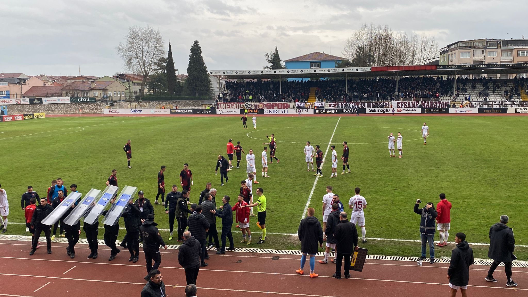 Yaşanan gerginliğe taraftarlarda dahil olunca tansiyon biranda yükseldi. Sahaya atılan yabancı maddeler nedeniyle İnegölspor cezayla karşı karşıya kaldı. İnegölspor kulüp başkanı taraftarları sakinleştirmek için uzun çaba harcadı.