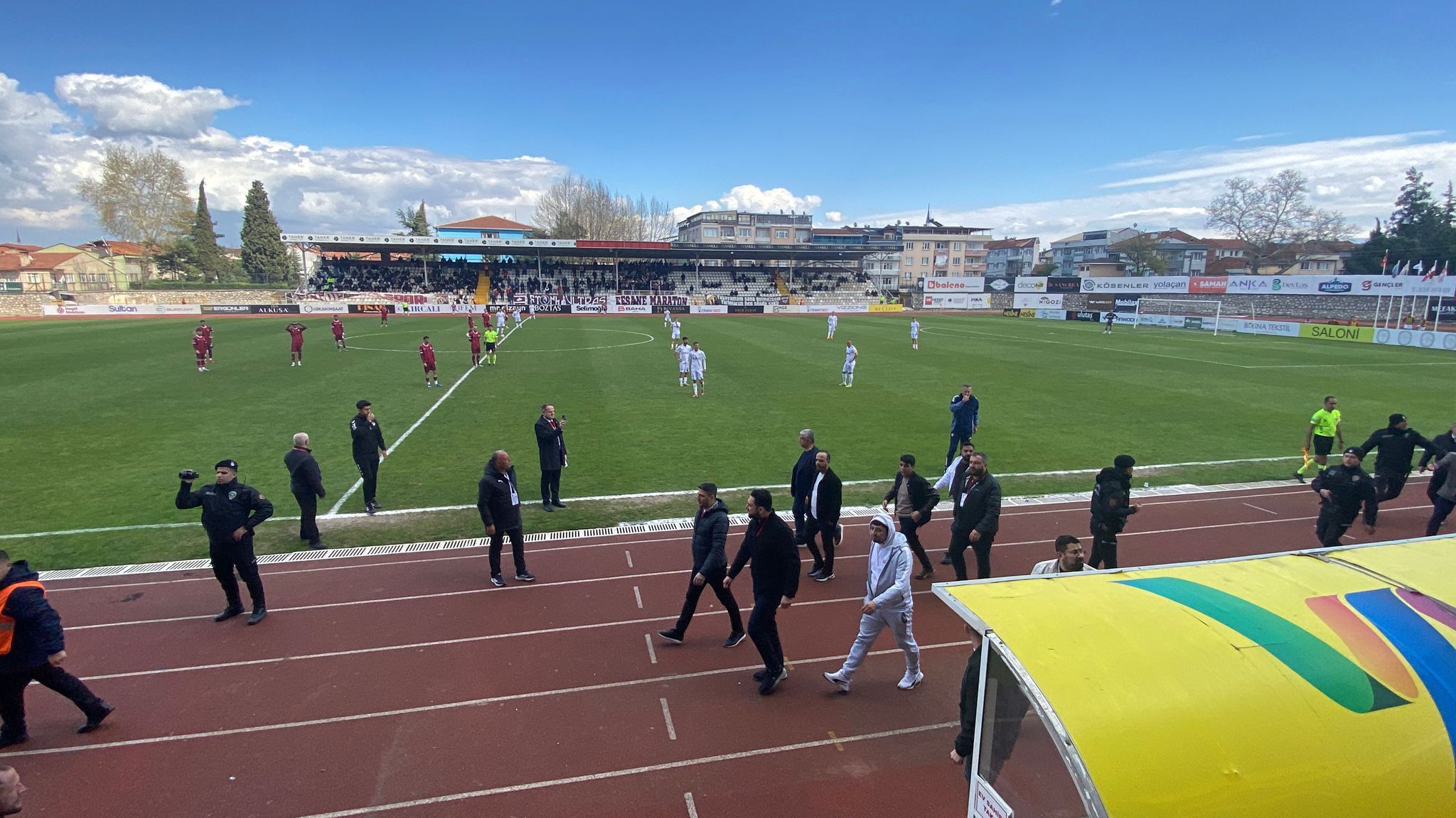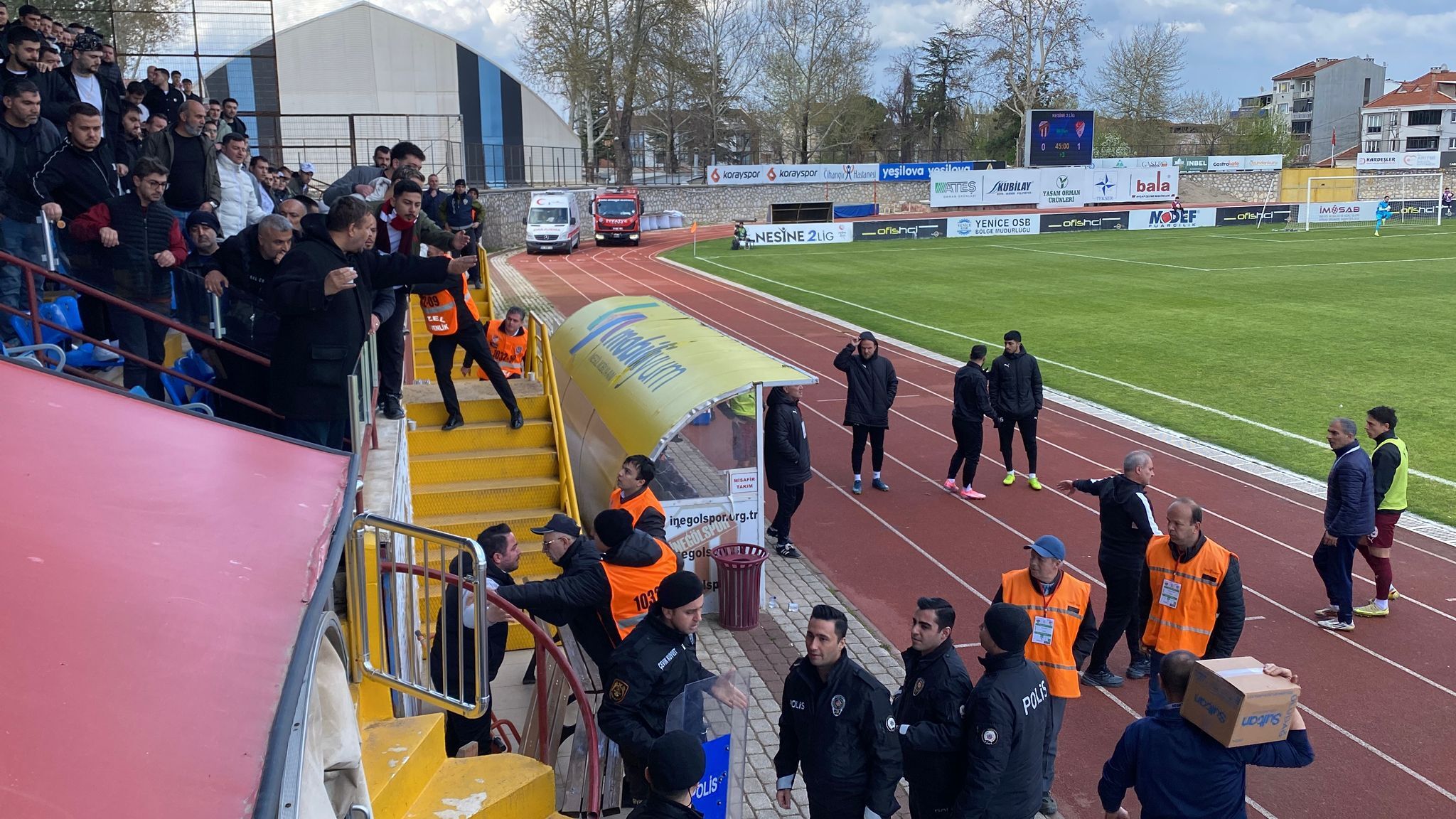 TFF 2. Lig Beyaz Grup mücadele eden İnegölspor ve Elazığspor arasında oynanan maç gergin anlar yaşandı. İnegölspor taraftarları arasında giren Elazığspor taraftarları biranda ortamı gerdi. Çıkan tartışmada tribün biran karıştı. Olaya Polis ekipleri müdahale ederek Elazığspor taraftarlarını İnegölspor taraftarları arasından alıp geniş güvenlik önlemleri altından çıkarıldı. Olaya karışan bazı taraftarlar gözaltına alındı.