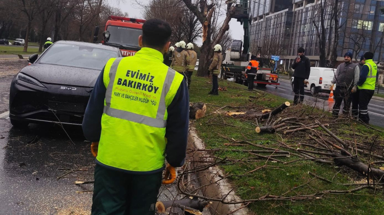 İstanbul'da Bakırköy Belediyesi, İstanbul genelinde etkisini artıran fırtına ve yağışın olumsuzluklara yol açmaması için ekiplerini sahaya indirirken, ağaç devrilmelerinden olası sel riskine kadar birçok noktada önlem aldı.