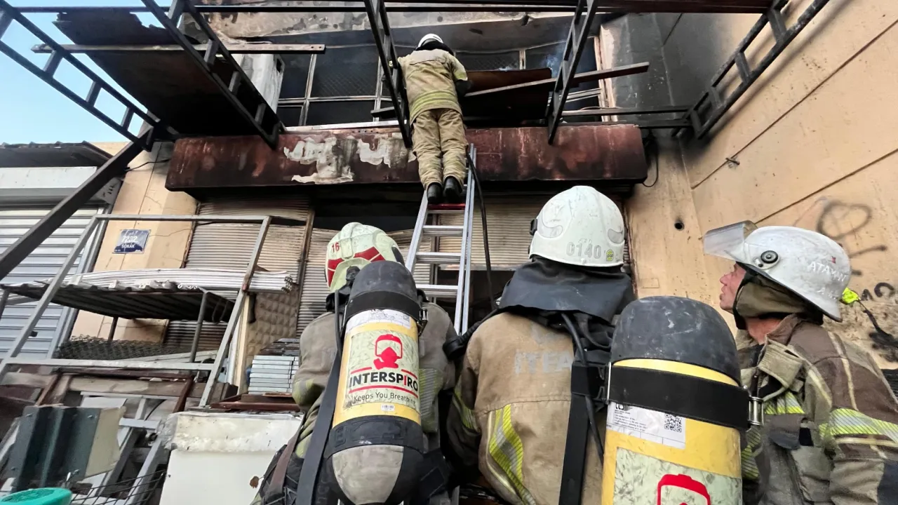 Yangının çevrede bulunan diğer iş yerlerine sıçraması önlenirken, bölgede soğutma çalışmaları devam ediyor.