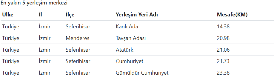 En Yakın Yerleşim Noktaları