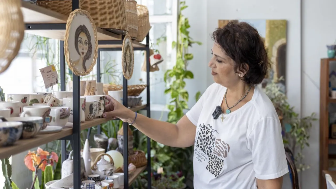 Mersin'de yıllardır hayalini kurduğu atölye kurma fikrini gerçeğe dönüştüren kadın üreticilerden Zeycan Yırtıcı, seramik ürünlerin yanı sıra; bambu, yağlı boya ve farklı el işi ürünlerini de atölyesinde sergiliyor.