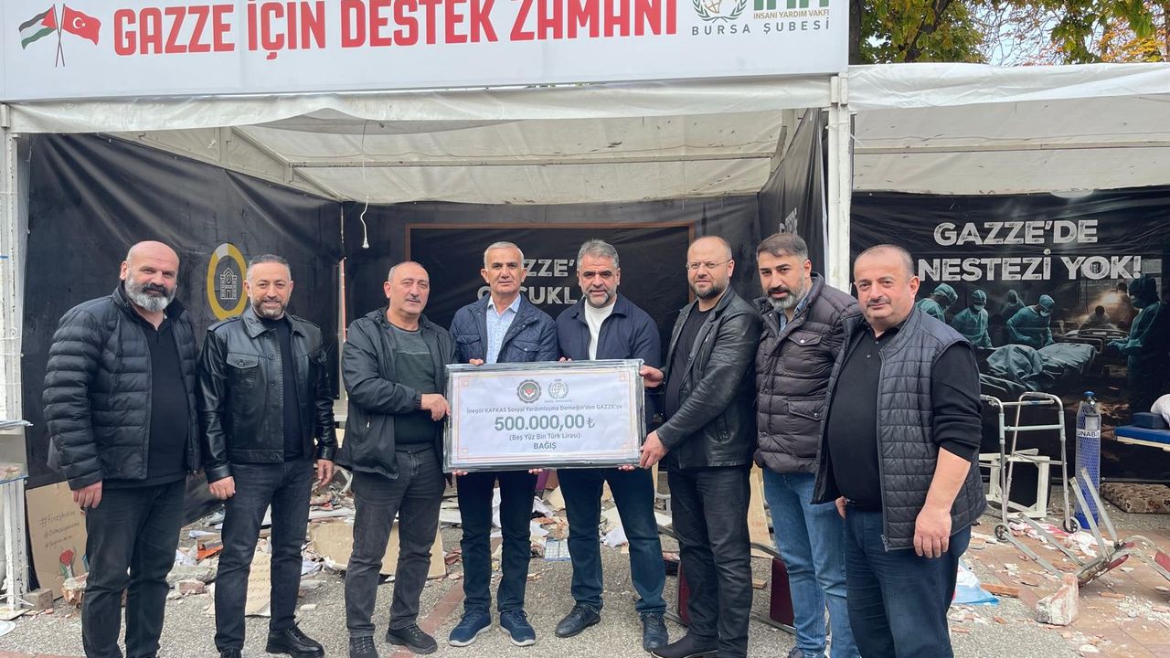 İnegol Kafkas sosyal yardım derneği İHH İnegöl Temsilciliği tarafından açılan Gazze Sokağını ziyaret edip , topladıkları 500.000.TL yi İHH İnegöl Temsilcisi Turgay DEMİR e teslim etti.