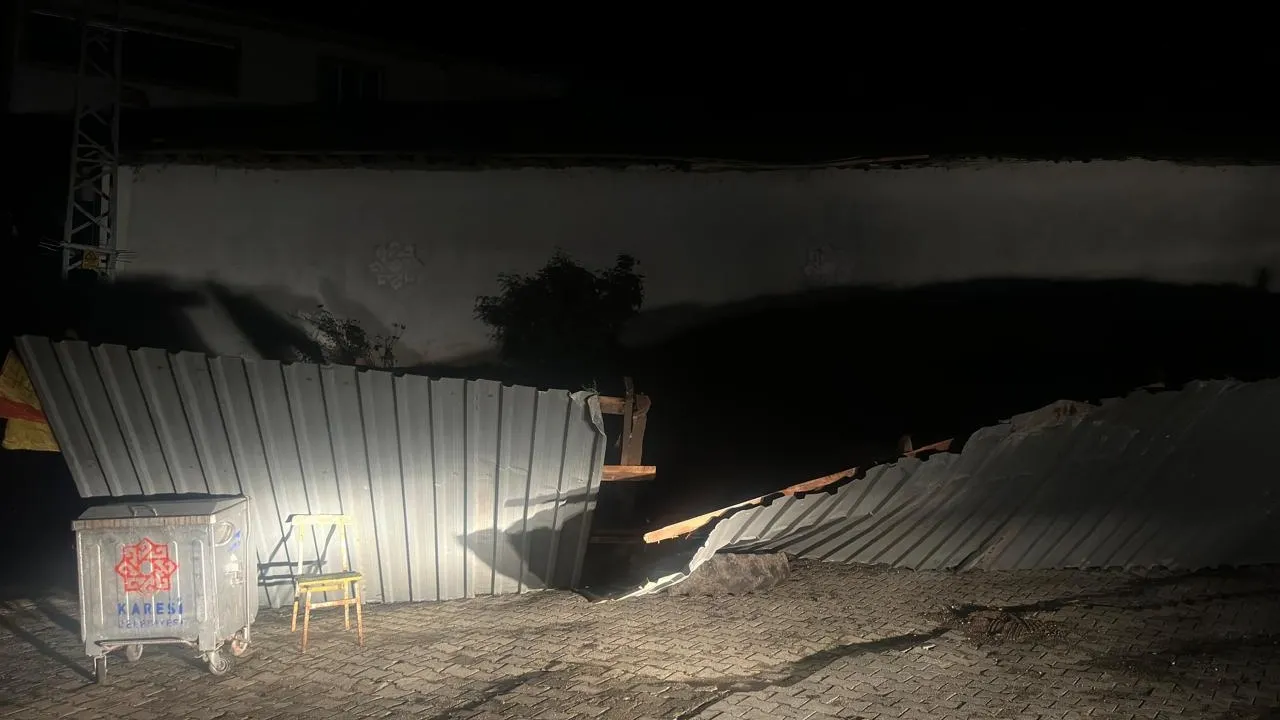 Balıkesir'in Karesi ilçesi Kurtdere Mahallesi'nde etkili olan şiddetli rüzgar, bir vatandaşa ait samanlığın çatısının uçmasına neden oldu. Can kaybı ya da yaralanmanın yaşanmadığı olayda, samanlığın çatısı kullanılamaz hale geldi.