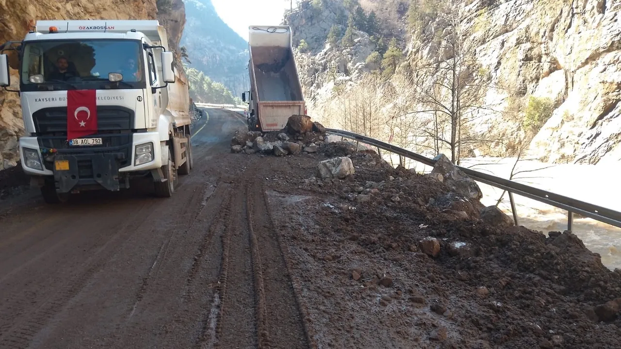 Kayseri Büyükşehir Belediye Başkanı Dr. Memduh Büyükkılıç'ın talimatlarıyla teyakkuzda olan Kırsal Hizmetler Daire Başkanlığı ekipleri hızla sahaya intikal etti. Ekipler, trafik ve can güvenliğinin sağlanması, riskli alanlarda gerekli tedbirlerin alınması ve ulaşımın aksamaması için gün boyu yoğun çalışma gerçekleştirdi.