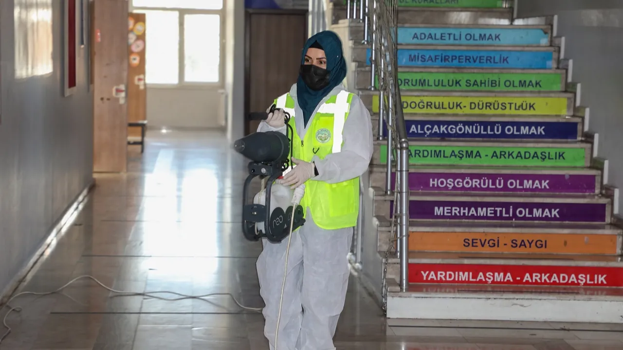 Şimdi de ara tatille birlikte yine temizlik başta olmak üzere hijyen, dezenfeksiyon ve haşere ilaçlama çalışmalarına başladık' ifadelerini kullandı.