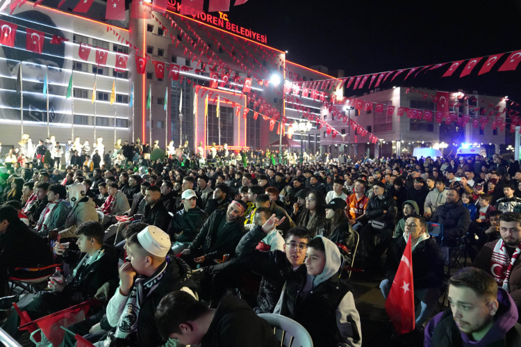 Keçiören Belediyesi tarafından Kalaba Kent Meydanı'nda kurulan dev ekranın etrafında toplanan binlerce vatandaş, A Milli Futbol Takımı'nın tarihi zaferine adeta tek yürek halinde tanıklık etti.