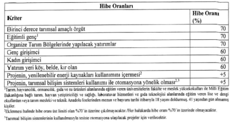 Bugünkü Resmi Gazete'de yayımlanan tebliğe göre; tarımsal ürünlerin işlenmesi, paketlenmesi, depolanması, büyükbaş-küçükbaş-kanatlı yetiştiriciliği, su ürünleri, kültür mantarı, kapalı ortam bitkisel üretim, yenilenebilir enerji ve özellikle dijitalleşme, yapay zekâ, akıllı tarım teknolojileri, sensör sistemleri ve robotik uygulamalarına yönelik yatırımlar desteklenecek.
