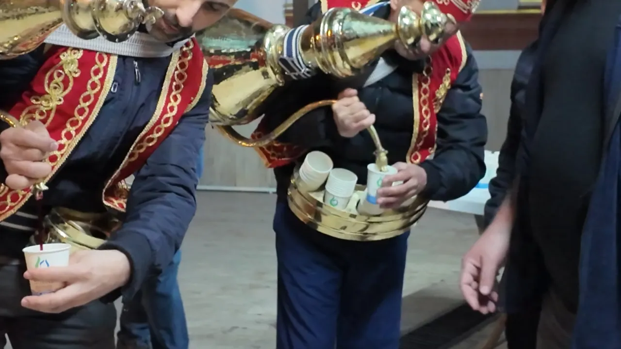 Ramazan ayına özel kostümlerle ilçedeki cami önlerine giden Çayırova Belediyesi Sosyal Hizmetler Müdürlüğü ekipleri, Ramazan şerbetini ilçe sakinlerine sunuyor.