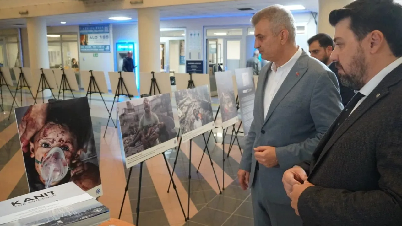İsrail'in Gazze'ye 7 Ekim 2023 tarihinde başlattığı saldırılarda işlenen savaş suçlarını belgeleyen 'KANIT - The Evidence' başlıklı fotoğraf sergisi, Gölcük Belediyesi hizmet binasında ziyarete açıldı.