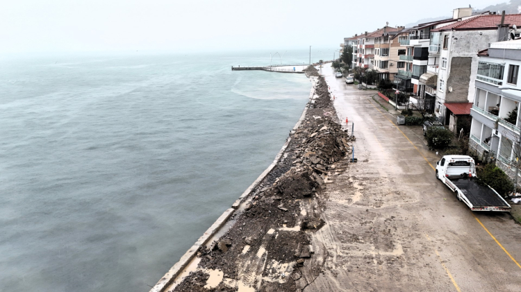 Kocaeli Büyükşehir Belediyesi, hayata geçirdiği projelerin yanı sıra vatandaşların can ve mal güvenliğini sağlayan yatırımlar da gerçekleştiriyor. Bu kapsamda Büyükşehir ekipleri, fırtınalı ve aşırı yağışlarda denizin kabarmasına karşı önlem olarak Gölcük Ulaşlı sahiline dalga kırıcı set inşa ediyor.
