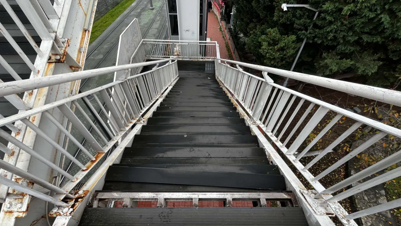 Üstgeçitte tespit edilen yapısal sorunları gidermek için çalışma yapan ekipler, eskiyen ve kırılan merdivenlerde tadilat ve tamirat çalışması yaptı.