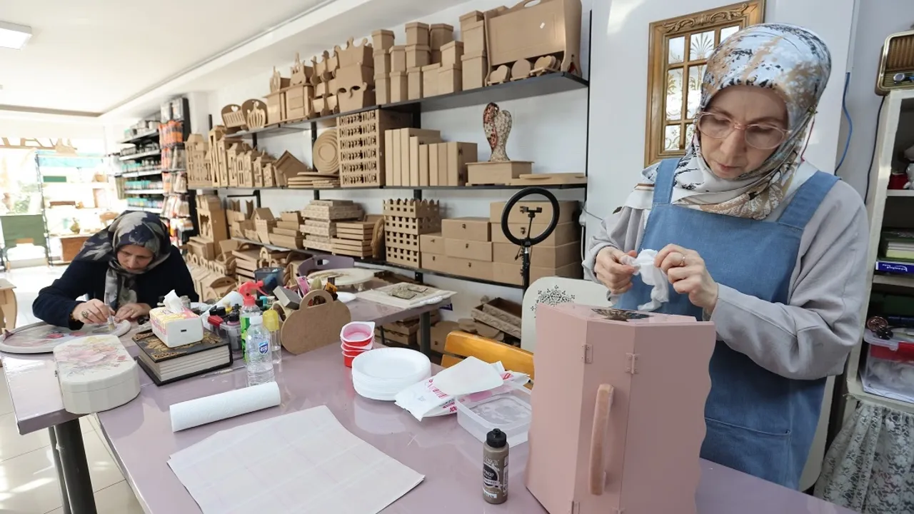 KOCAELİ (İGFA) - Kocaeli Büyükşehir Belediyesi Meslek ve Sanat Eğitimi Kurslarına (KO-MEK) bağlı Körfez Kurs Merkezi'nde ahşap boyama, ebru, makrome, kâğıt rölyef ve çanta dikimi gibi farklı branşlarda eğitim alan 3 kursiyer, ürettikleri el emeği ürünleri satışa sunarak kendi işinin patronu oldu. Sadece kendi ürünlerini satmakla kalmayan girişimci kursiyerler, KO-MEK'te üretim yapan arkadaşlarının çalışmalarını da dükkânlarında sergileyip satışa sunuyor. Böylece elde edilen gelir, hem diğer kursiyerlere ek kazanç sağlıyor hem de onlara yeni istihdam alanı oluşturuyor. Üç ortak, 'Nadide Hobi' çatısı altında bir araya gelerek hem kendi ekonomik bağımsızlıklarını güçlendirdi hem de çevrelerindeki kadınlara destek olan örnek bir girişime imza attı.
