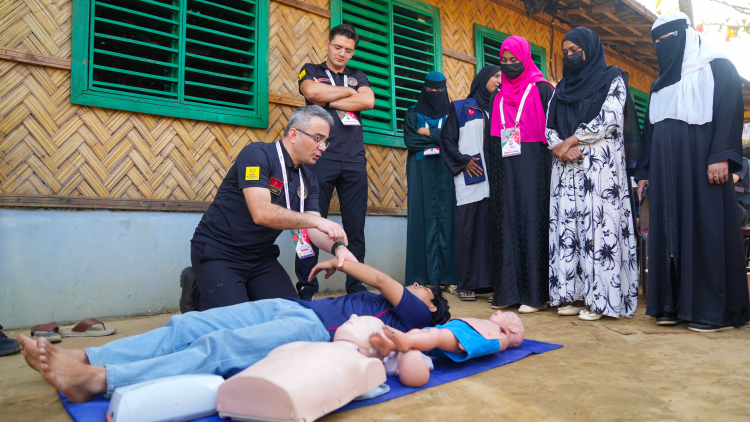 Acil Durum ve Afet Müdahale Eğitimleri Programı (ADAMEP) kapsamında dünyanın en büyük mülteci yerleşim alanlarından biri olan Cox's Bazar'daki kamplarda; Afet Farkındalığı ve Yangın Güvenliği, İlkyardım ile İlkyardım Eğitici eğitimleri verildi.