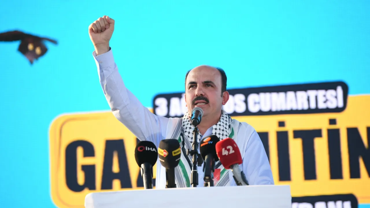 Başkan Altay, 'Bu soykırım sonucu 65 bine yakın Gazzeli kardeşimiz şehit olmuş, çoğu çocuk olmak üzere 500'e yakın Gazzeli ise açlıktan hayatını kaybetmiştir. Zulmün arşı titrettiği bu coğrafyada her çığlık, her gözyaşı bize adaletin, merhametin ve dayanışmanın ne kadar olduğunu yeniden hatırlatmaktadır. Bizler Filistinli kardeşlerimizin yaşadığı zulmü yüreğimizin derinlerinde hissediyoruz. Cumhurbaşkanımız Sayın Recep Tayyip Erdoğan geçtiğimiz günlerde Birleşmiş Milletlerde bir kez daha mazlum Filistinlilerin sesi olmuş, dünya beşten büyüktür diyerek adeta intifada ilan etmiştir. Konya Büyükşehir Belediyesi olarak bizler de bu katliamların son bulması, kalıcı barışın sağlanması ve nehirden denize özgür bir Filistin için tüm gayretimizi seferber ediyoruz' diye konuştu.