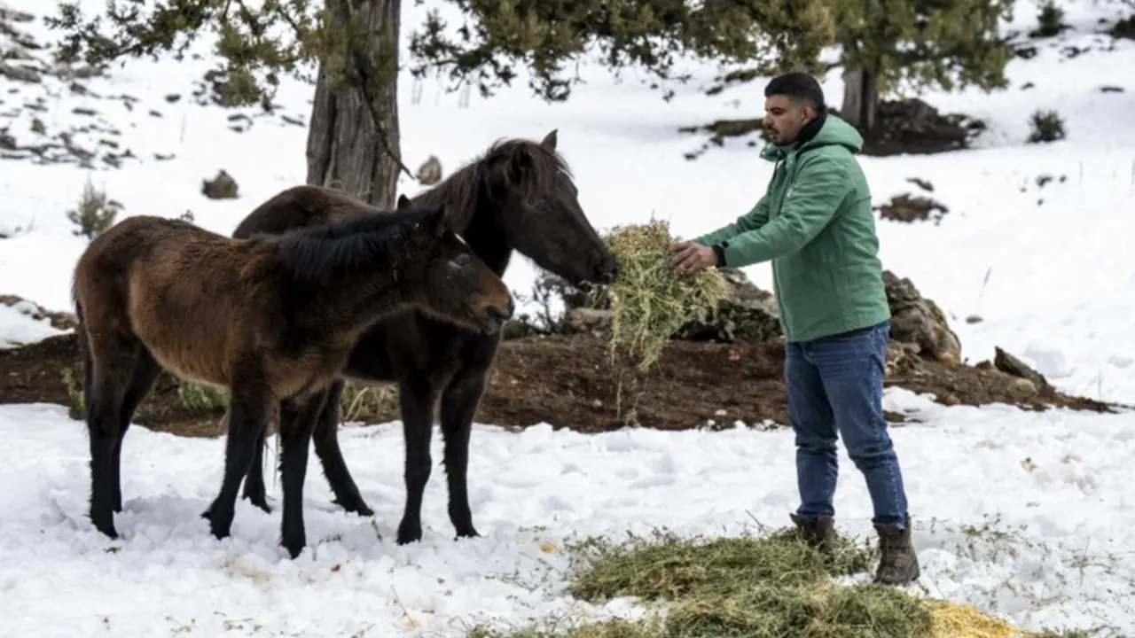 Toros Dağları'nın yüksek kesimlerinde yaşayan yaban hayvanlarının bu zorlu süreçte besinsiz kalmaması için harekete geçen Büyükşehir Belediyesi ekipleri, her yıl olduğu gibi bu yıl da yılkı atları için özel bir besleme çalışması gerçekleştirdi.