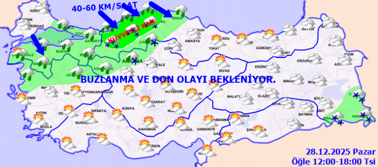 ANKARA (İGFA) - Meteoroloji Genel Müdürlüğü, 28 Aralık Pazar gününe ilişkin hava tahmin raporunu yayımladı.